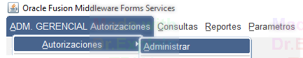 Dentro de este menu tenemos las opcion de AUTORIZACIONES-ADMINISTRAR