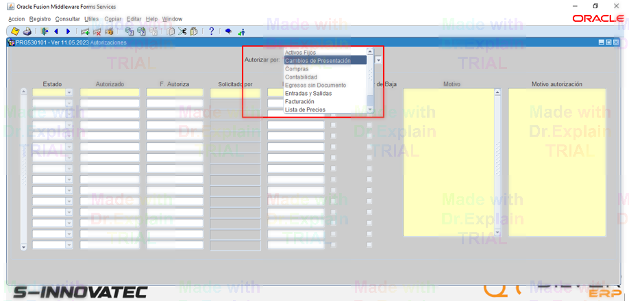 Por medio de esta proceso podemos escoger el tipo de autorizacion de los diferentes aspectos, tanto de Contabilidad, Compras, Entradas y Salidas etc.