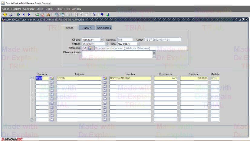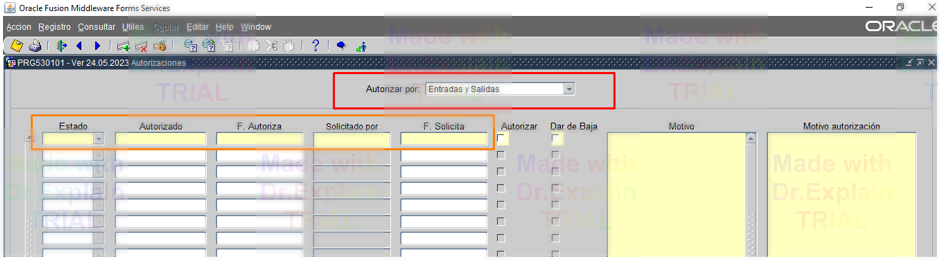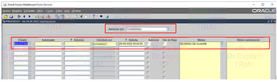 En esta misma pantalla al dar doble click sobre la linea en color tomate se despliega el movimiento del cual se va a autorizar