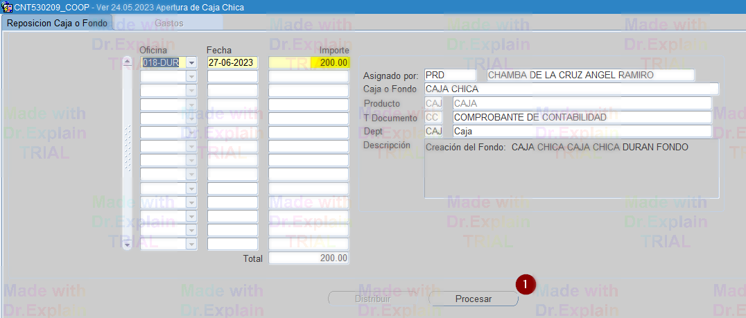 Usuario respnsable de Caja Chica efectiviza el egreso de Contabilidad