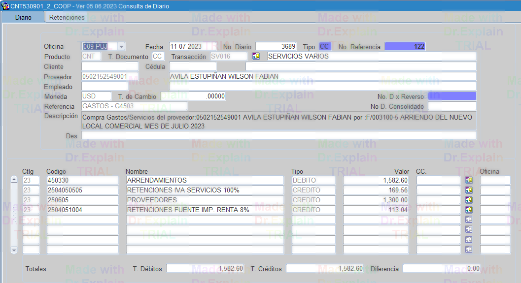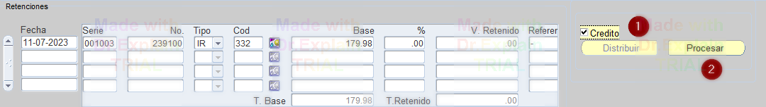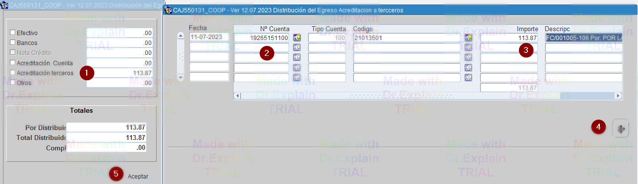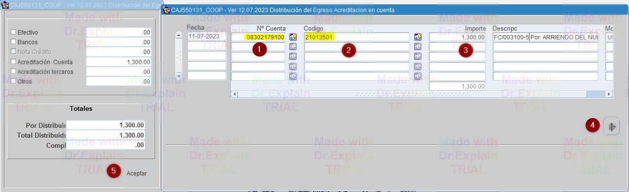 seleccionar la cuenta a la que se acredita y en importe es el valor