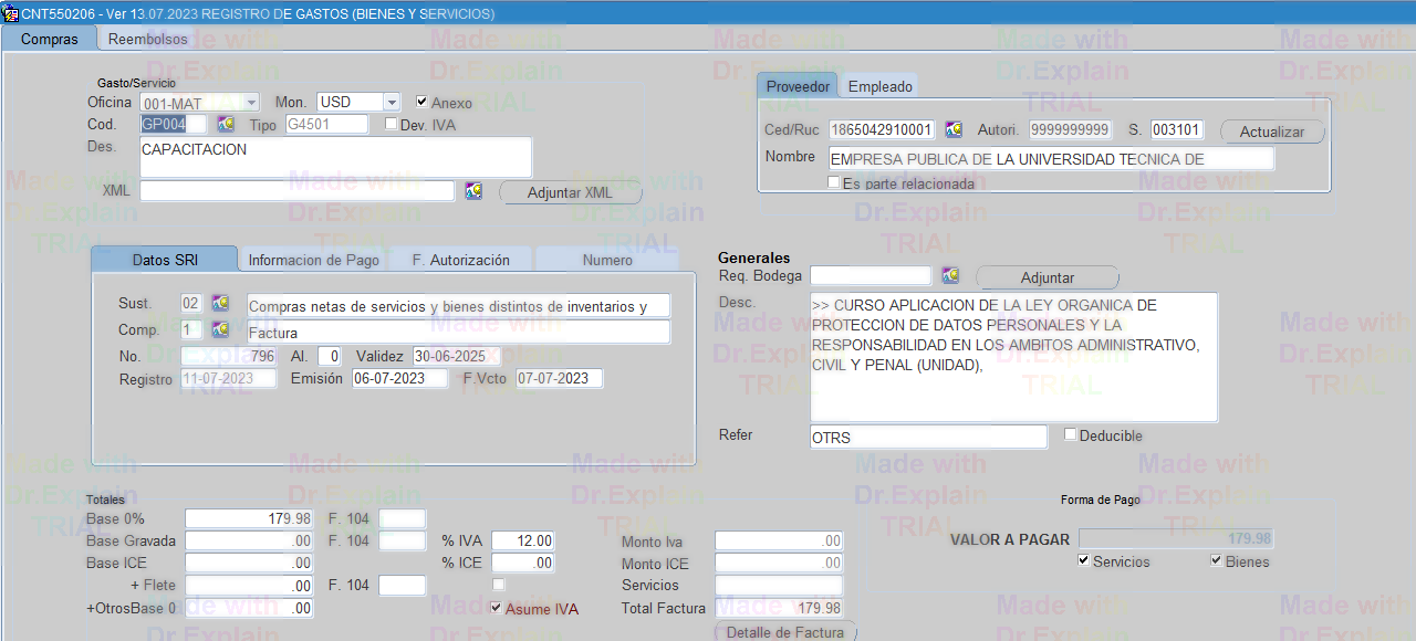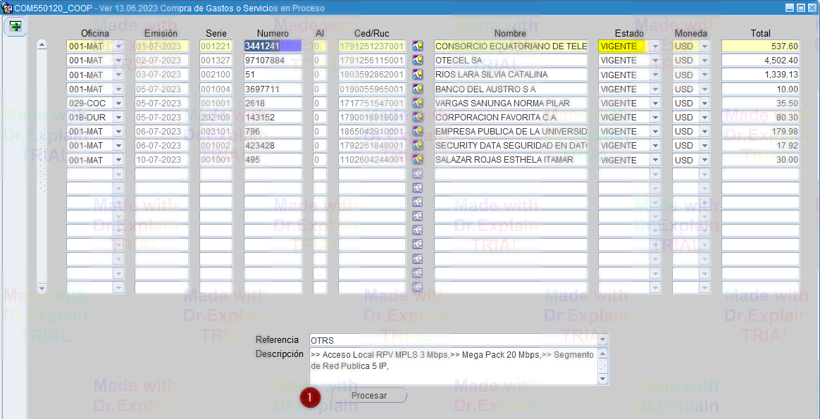 3.2.1.5. Compras en Proceso (Bienes y Servicios)