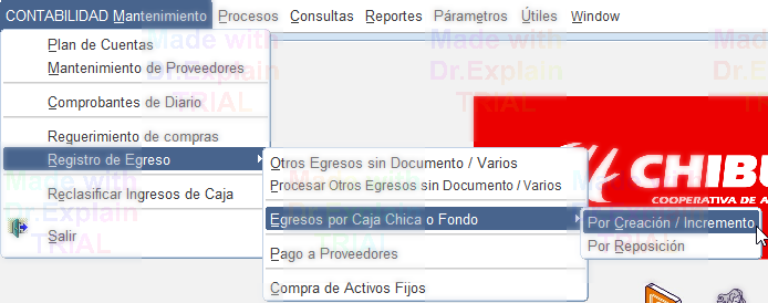 Seleccionar la cuenta de caja chica