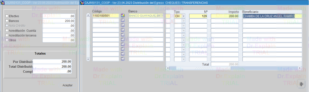 en el botón Distribuir, seleccionar la forma del Egreso