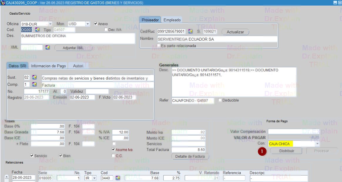 Se habilita el botón para Distribuir el gasto a la Provisión