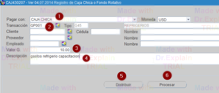 5. Distribuir el gasto, por efectivo de Caja Chica