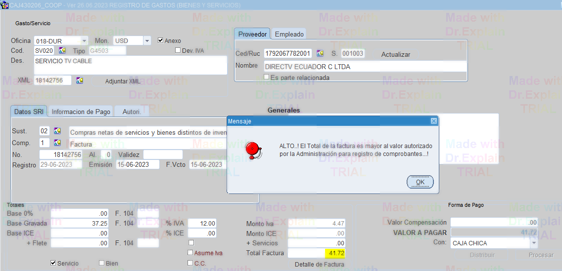 NOTA: la solicitud de facturas de gastos tiene el contrl de valor máximo por caja chica