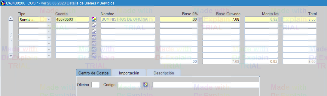 en Tipo trae el tipo de gasto seleccionado anteriormente y confirmar la cuenta contable